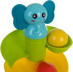 Táto edukatívna a senzorická hračka je ideálna pre deti od 18 mesiacov. Podporuje rozvoj jemnej motoriky, koordináciu oko–ruka a učenie príčina–následok. Vďaka jednoduchej montáži a kompaktnej konštrukcii ju môžete rýchlo zložiť, rozložiť a vziať so sebou na cesty. Veža s motívom slona a šesť farebných guľôčok je skvelý tip na darček.
