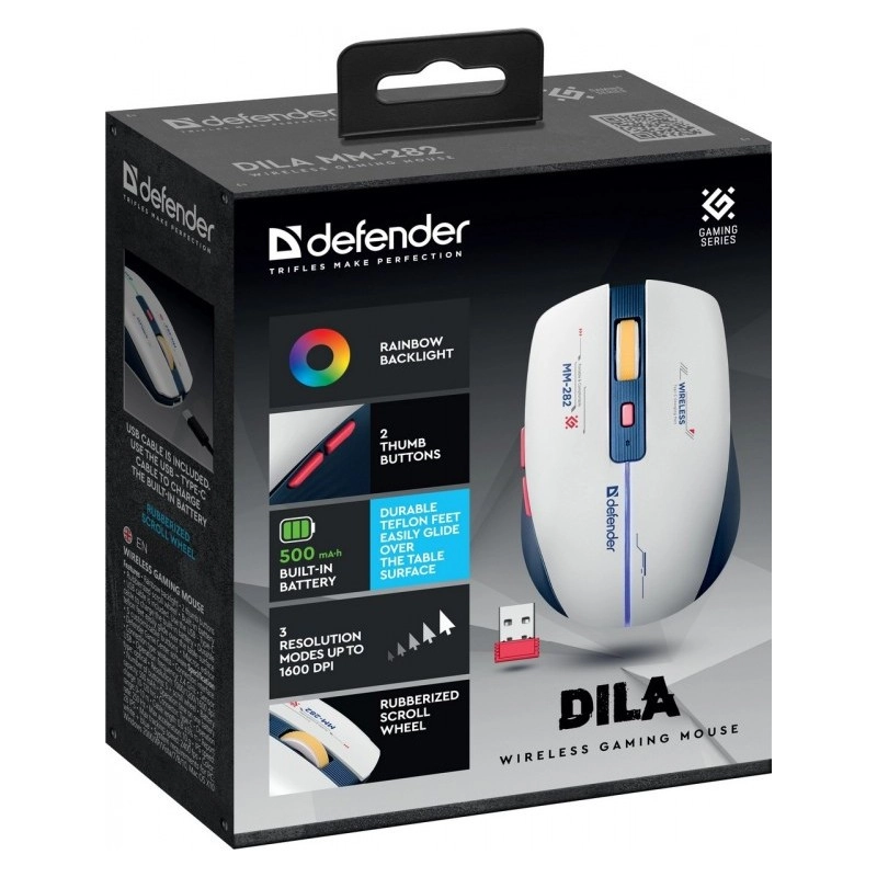 Ľahká a pohodlná bezdrôtová herná myš Dila MM-282 ponúka RGB podsvietenie, 3 úrovne DPI až 1800, 2 bočné tlačidlá a teflónové klzné plochy pre plynulý pohyb. Vďaka vstavanej batérii 500 mAh a spoľahlivému bezdrôtovému pripojeniu RF je ideálna na hranie aj prácu.