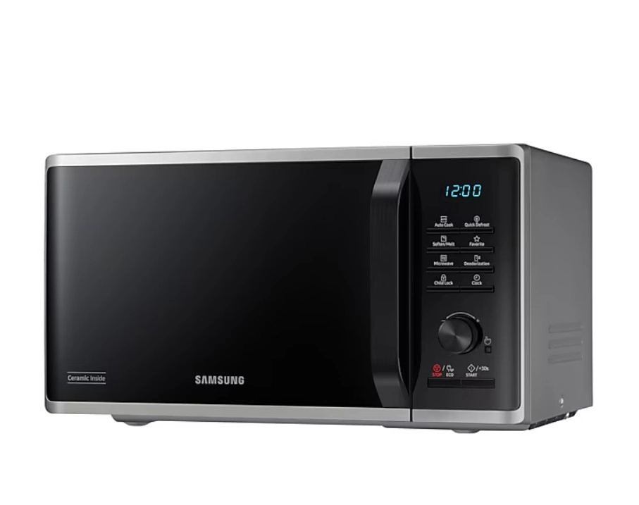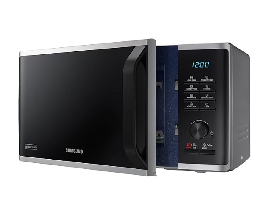 Štýlová mikrovlnná rúra SAMSUNG MS23K3515AS ponúka rýchle a rovnomerné rozmrazovanie, odolný keramický vnútorný povrch pre jednoduché čistenie a deodorizáciu pre sviežu vôňu vo vnútri. S úsporným ECO režimom znížite spotrebu energie a vďaka Auto Menu a funkciám na rozpúšťanie masla a čokolády zvládnete varenie aj pečenie pohodlne a bez pripálenia.