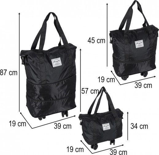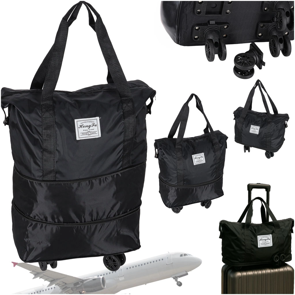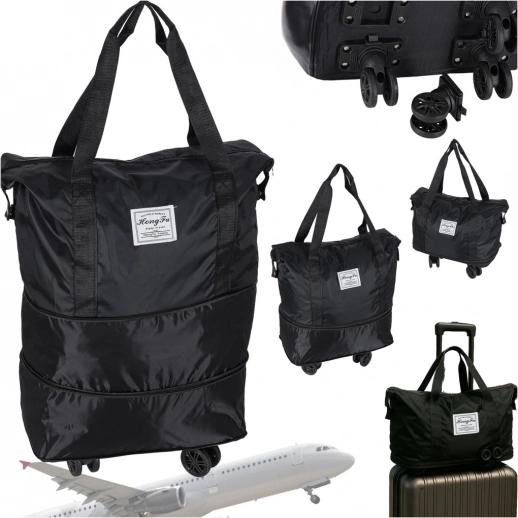 Skladacia cestovná taška na kolieskach, objemná, 3 veľkosti, čierna