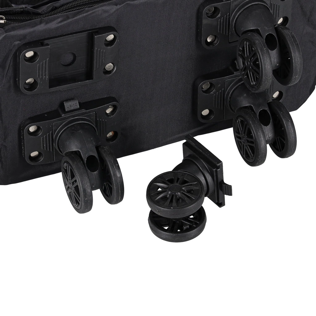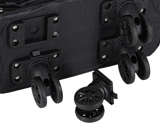 Ľahkú manipuláciu zabezpečujú otočné 360° kolieska z PVC, ktoré sú navyše odnímateľné a osadené na pevných koľajničkách. Praktické vonkajšie a vnútorné vrecká udržia drobnosti po ruke, bočné úchyty a vysoké rukoväte uľahčia prenášanie aj ťahanie.