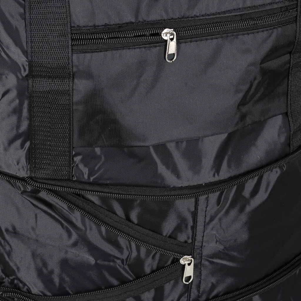 Skladacia cestovná taška na kolieskach s objemom cca 50 l. Vodoodolný Oxford, 360° odnímateľné kolieska, viac vreciek a tri úrovne rozloženia.