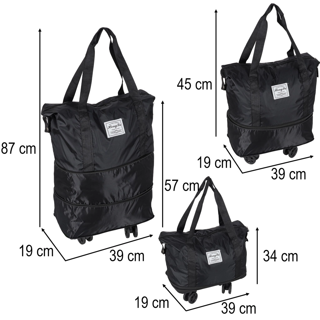 Praktická skladacia cestovná taška na kolieskach na víkend aj dlhšie cesty. Ponúka až tri úrovne rozloženia, objem okolo 50 litrov, vodoodolný Oxford polyester, otočné 360° kolieska a pevný zips. Vďaka odnímateľným kolieskam a premyslenému vnútornému členeniu je ideálna na pohodlné balenie a ľahkú manipuláciu.