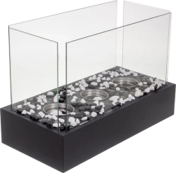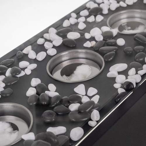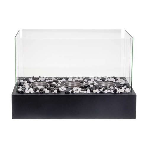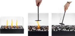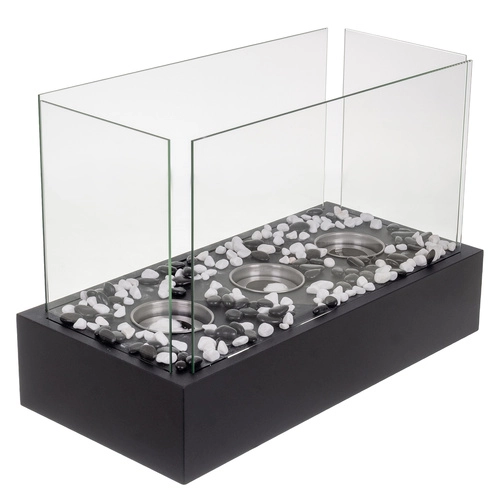 Súčasťou sú 3 nerezové horáky so savým keramickým vláknom pre dlhšie horenie, dekoratívne biele a čierne kamienky aj hasia pomôcka. Jednoduchá montáž a obsluha z neho robia perfektnú voľbu na rýchle vytvorenie atmosféry a tepla počas chladných večerov.