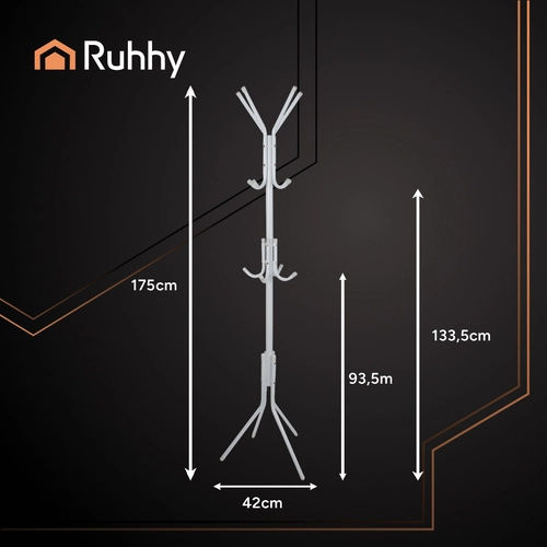 Elegantný stojanový vešiak RUHHY je praktické riešenie pre každý domov aj kanceláriu. Ponúka tri úrovne zavesenia, stabilnú kovovú konštrukciu na 4 pevných nožičkách a univerzálne použitie od predsiene po čakáreň. Ľahko sa udržiava, je voľne stojaci a nevyžaduje vŕtanie ani špeciálne náradie.