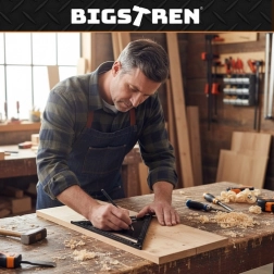 Univerzálny tesársky uholník BIGSTREN na presné meranie a značenie uhlov 90° a 45°. Ponúka čitateľné stupnice v cm a palcoch, pevnú hliníkovú konštrukciu s čiernou povrchovou úpravou a dlhú životnosť. Ideálne do dielne aj na hobby, súčasťou je 5 tesárskych ceruziek.