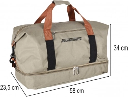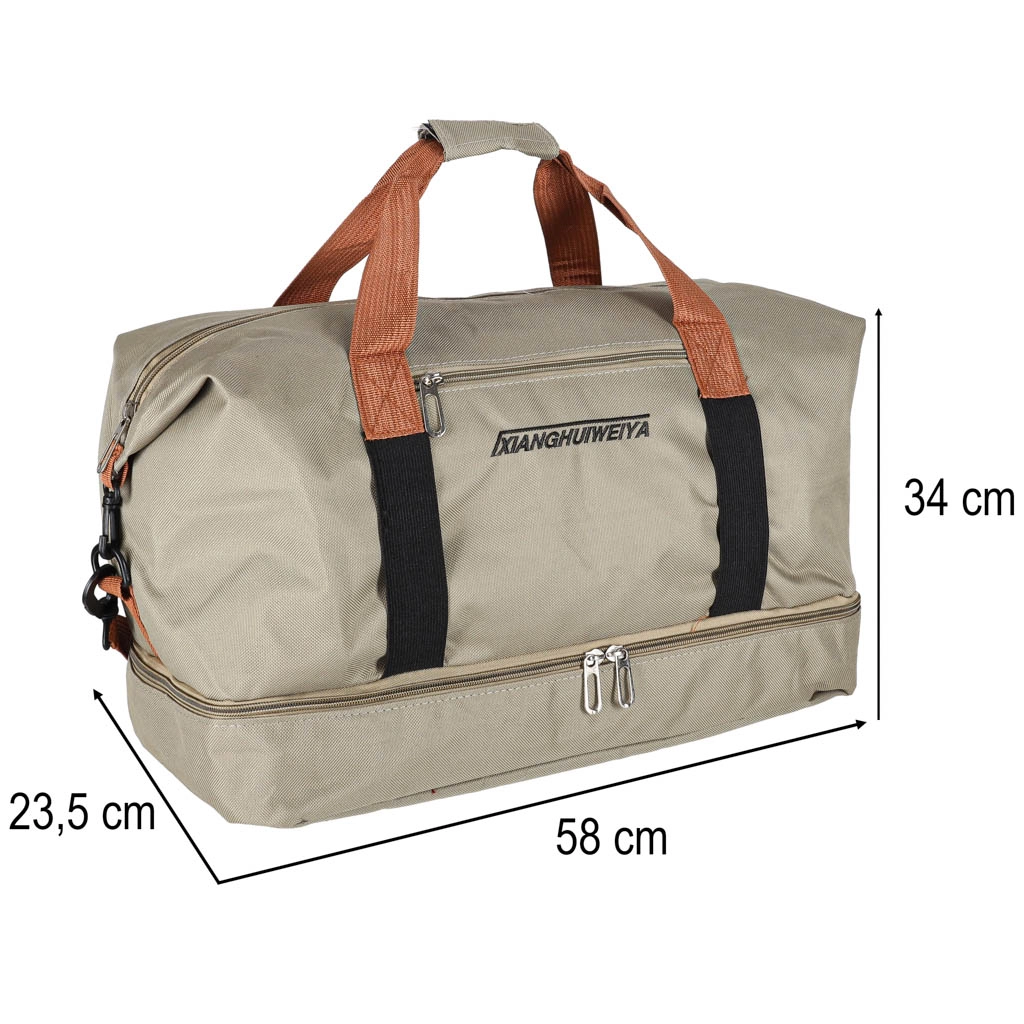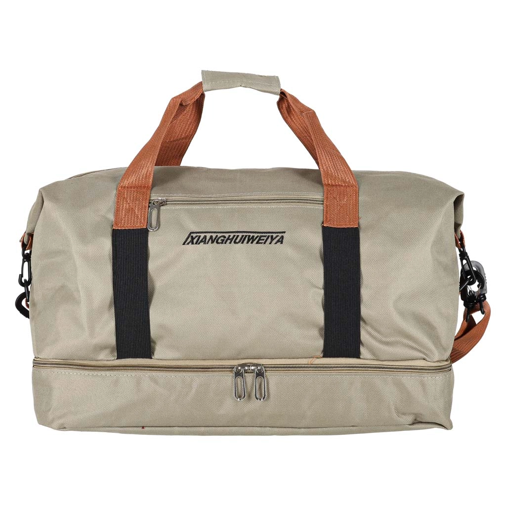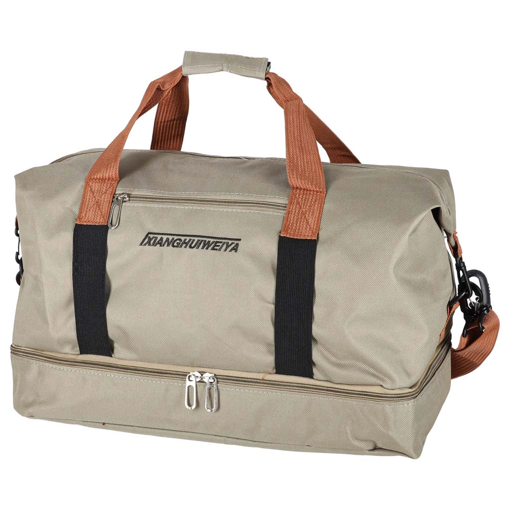 Praktická cestovná taška v elegantnej béžovej farbe ponúka samostatnú spodnú komoru na obuv, odnímateľný a nastaviteľný ramenný popruh a odolný materiál Oxford 600D. Skvele poslúži ako príručná batožina do lietadla aj taška do posilňovne.
