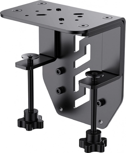 Univerzálne uchytenie umožňuje inštaláciu na hornú hranu stola alebo na držiak po zložení dosky v tvare C. Kompaktný dizajn šetrí miesto a podporuje ergonomické usporiadanie domáceho aj profesionálneho simrigu.