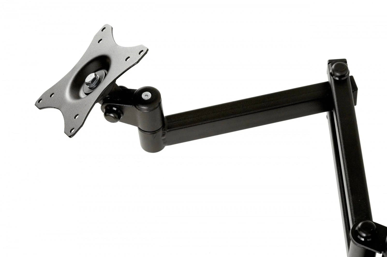 Držiak je kompatibilný so štandardmi VESA 75×75 a 100×100 a hodí sa pre väčšinu monitorov s uhlopriečkou 19–26. V balení nájdete dva spôsoby uchytenia (C-svorka k hrane stola alebo priechodka cez dosku), takže montáž prispôsobíte svojmu pracovnému priestoru.