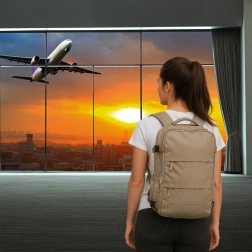 Polstrované nastaviteľné popruhy a horné madlo so sieťovinou zabezpečujú komfortné nosenie v meste aj na letisku.