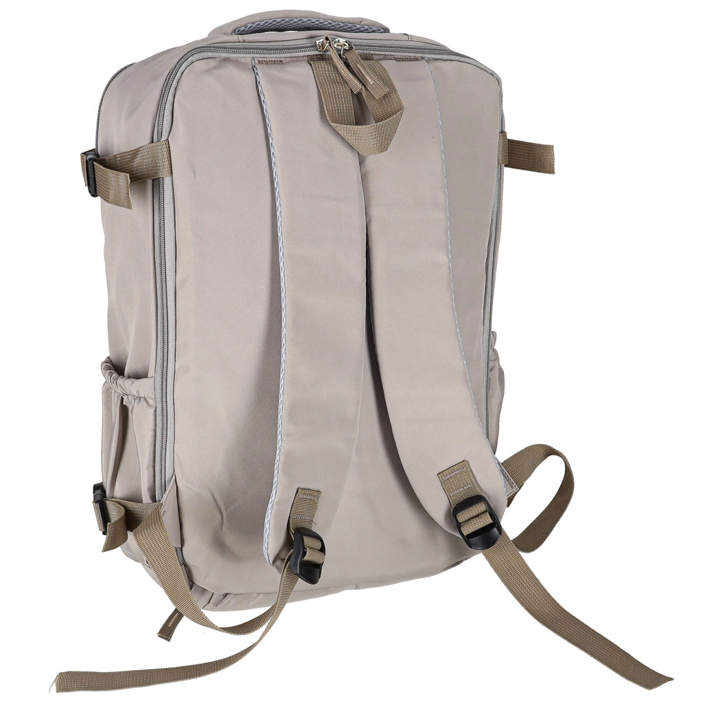 Tento sivý cestovný batoh vyniká premysleným členením: dve horné zipsové komory a spodná samostatná priehradka udržia oblečenie, obuv aj drobnosti prehľadne oddelené. Odolná tkanina Oxford 420D obstojí v každodennom používaní, zatiaľ čo polstrované ramenné popruhy a horné madlo so sieťovinou zaistia pohodlné nosenie.