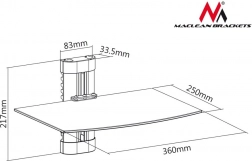 Maclean MC-663 je kvalitná nástenná polička s 5 mm tvrdeným sklom, ktorá udrží vaše multimediálne zariadenia bezpečne a na dosah. Minimalistický dizajn s čiernym sklom skvele ladí s modernými televízormi a interiérmi.