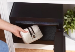 Uchovajte svoje cennosti v bezpečí vďaka kompaktnému sejfu s moderným dizajnom, ktorý skvele zapadne do každého interiéru. Vstup cez odtlačok prsta alebo PIN zaisťuje pohodlné a rýchle ovládanie, zatiaľ čo laserom vyrezané dvere a zámok s motorizovanými čapmi poskytujú solídnu ochranu proti pokusom o vlámanie.