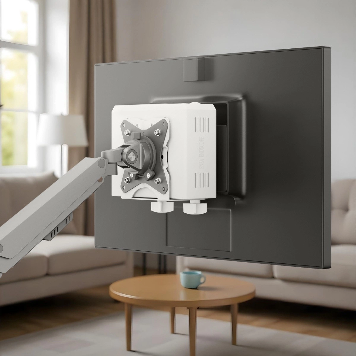 Držiak podporuje štandard VESA, takže ho pripevníte priamo na stenu, na zadnú stranu monitora alebo na rameno/konzolový systém. Umožňuje flexibilné a čisté usporiadanie pracoviska bez kompromisov v ergonómii.
