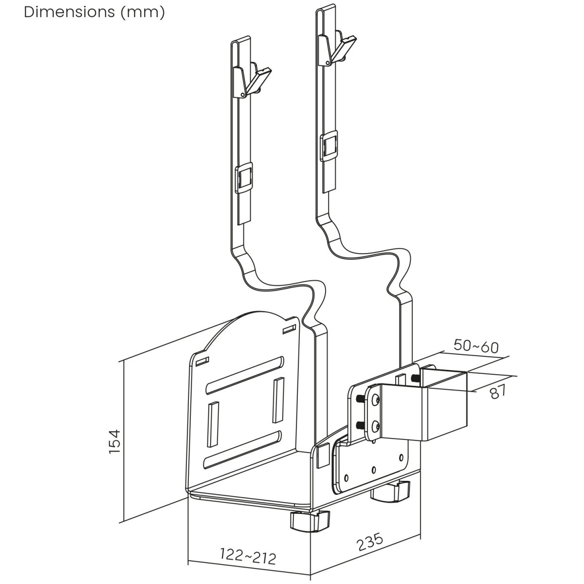Vďaka nastaviteľnému rozsahu hĺbky ľahko prispôsobíte držiak väčšine tower skriniek. Dvojica pevných popruhov s prackou drží PC pevne na mieste a bráni nežiaducemu pohybu pri vibráciách alebo náhodných nárazoch. To všetko pri nosnosti až 10 kg, ktorá pokrýva bežné kancelárske aj domáce zostavy.