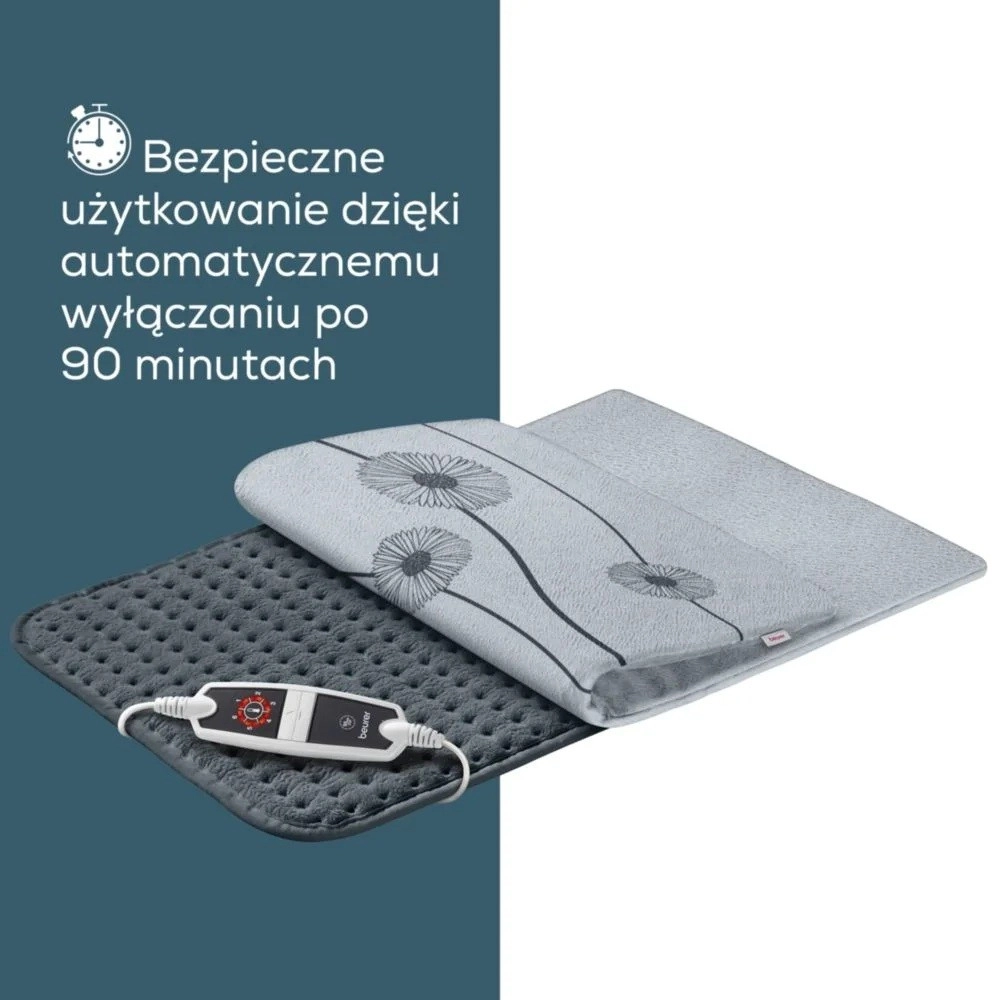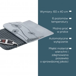 Poduška je vyrobená z hebkého, priedušného materiálu, ktorý je príjemný na dotyk. O vašu bezpečnosť sa stará bezpečnostný systém Beurer s priebežnou kontrolou teploty a automatickým vypnutím po 90 minútach.