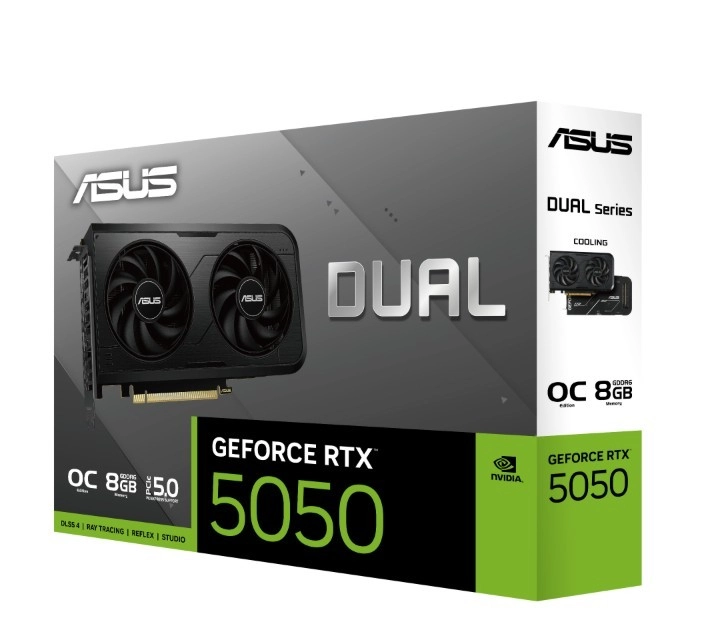 Kompaktná grafická karta ASUS Dual GeForce RTX 5050 OC 8GB spája vysoký výkon s tichým a účinným chladením. Dvojica Axial-tech ventilátorov, 2‑slotový dizajn a kovový backplate zabezpečujú skvelú kompatibilitu aj do menších skriniek. Využite silu DLSS 4, ray tracingu a akcelerácie AI pre plynulé hranie a rýchlejšiu kreatívnu prácu.