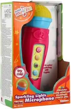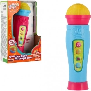 S mikrofónom, ktorý obsahuje 6 nahraných melódií, si deti užijú more zábavy. Pri spievaní môžete zapnúť aj tlačidlo pre potlesk alebo sprievodný zvuk. Táto hračka rozvíja detskú zručnosť, rytmus, hudobný talent a sluch. Mikrofón tiež svieti. Batérie 2x AAA nie sú súčasťou balenia.