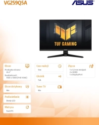 Vstúpte do sveta plynulého hrania s monitorom ASUS TUF Gaming VG259Q5A. Vďaka panelu IPS ponúkne široké pozorovacie uhly a presné podanie farieb, zatiaľ čo vysoká obnovovacia frekvencia 200 Hz a mimoriadne nízka odozva 0,3 ms zaručia ostrý obraz aj v najrýchlejšej akcii.