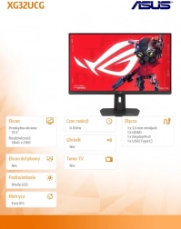 ASUS ROG XG32UCG je stvorený pre náročných hráčov aj kreatívnych tvorcov. Veľká 31,5'' uhlopriečka s jemným 4K UHD rozlíšením vykreslí každý detail, zatiaľ čo stabilný stojan s výškovým nastavením, náklonom a možnosťou otočenia zaistí pohodlné sledovanie po celý deň. Vďaka tenkým rámikom sa monitor hodí aj pre viackrát monitorové zostavy.