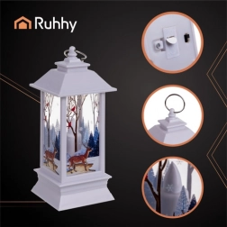 Táto štýlová dekoratívna lampa v bielej farbe so zimnými a vianočnými motívmi prináša do interiéru teplé, útulné svetlo. Integrované LED svetlo s efektom sviečky navodí príjemnú atmosféru bez rizika otvoreného ohňa – ideálna voľba do domácnosti aj komerčných priestorov.
