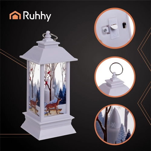 Elegantná biela vianočná lampa RUHHY s motívom zimného lesa vytvára čarovnú atmosféru domova. Vo vnútri má úsporné teplé LED svetlo napodobňujúce plameň sviečky – bezpečné, bez dymu a bez káblov. Vďaka napájaniu na batérie ju ľahko umiestnite na stôl, komodu, okenný parapet či do výkladu a okamžite dodáte interiéru sviatočnú náladu.