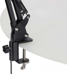 V balení nájdete ako stabilnú okrúhlu základňu, tak aj svorkové uchytenie na hranu dosky (max. 5 cm). Zvoľte riešenie, ktoré vyhovuje vášmu pracovnému priestoru – na stole alebo úsporou miesta pomocou svorky.