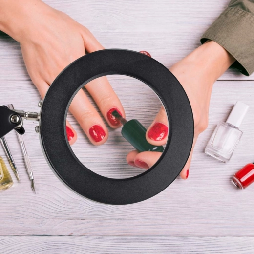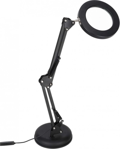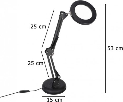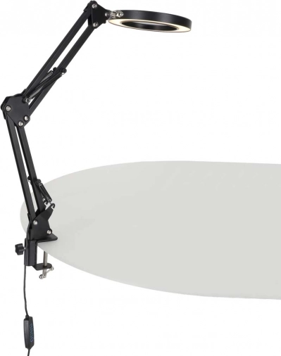 Táto elegantná čierna LED lampa kombinuje osvetlenie s lupou x3 v jednom, takže skvele poslúži pri modelárstve, šití, elektronike, rukodielnej tvorbe aj pri čítaní drobného písma. Kruhový LED prstenec poskytuje rovnomerné, neoslňujúce svetlo s verným podaním farieb (CRI > 80), aby boli detaily viditeľné ostro a pohodlne.