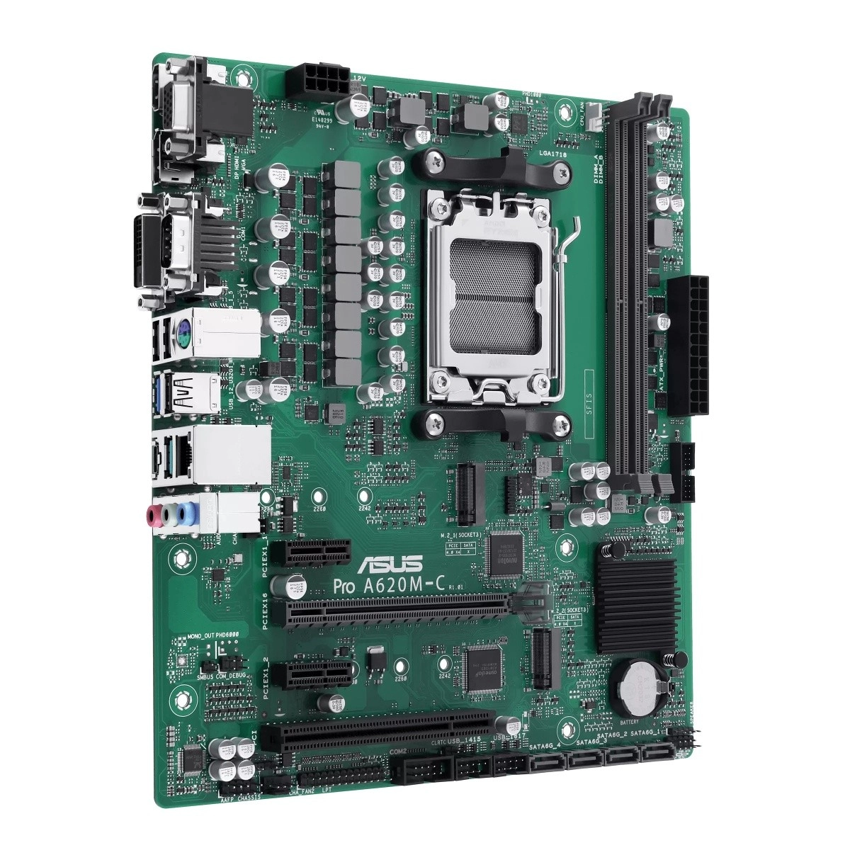 ASUS PRO A620M-C-CSM je na firmy orientovaná micro‑ATX doska s päticou AM5 pre procesory AMD Ryzen. Vyniká stabilitou a dlhodobou dostupnosťou v rámci programu ASUS CSM, ktorý pridáva oznámenia o ukončení životného cyklu a IT softvér pre jednoduchšie nasadenie vo firmách. Integrované Asus Control Center Express zjednodušuje centralizované monitorovanie a správu klientskych strojov.