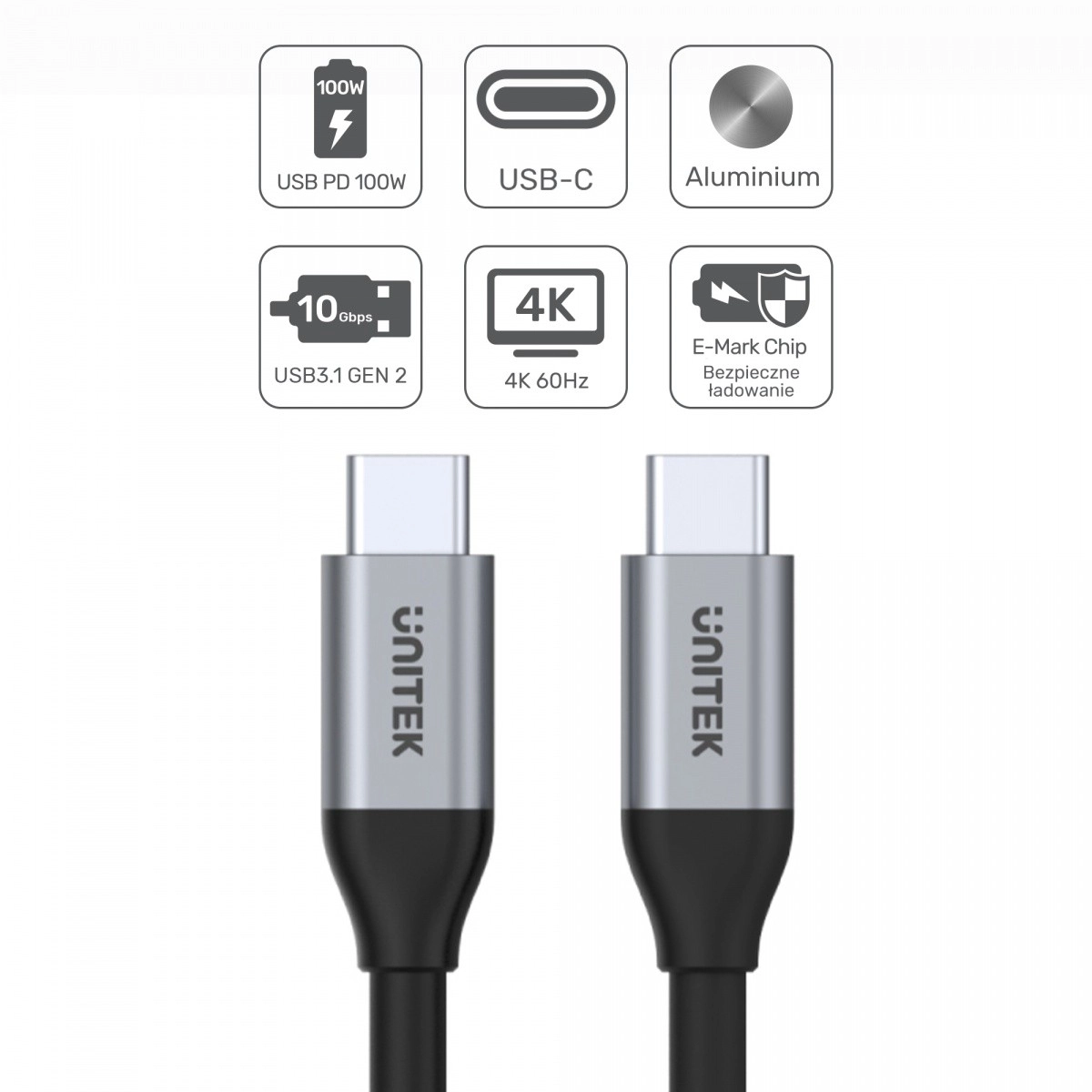 Spoľahlivý USB‑C ↔ USB‑C kábel s dĺžkou 1 m pre rýchly prenos dát až 10 Gbps, obraz 4K pri 60 Hz a Power Delivery 100 W. Vďaka čipu E‑MARK je nabíjanie aj synchronizácia rýchla, stabilná a bezpečná; hliníkové koncovky zaisťujú odolnosť pri každodennom používaní.
