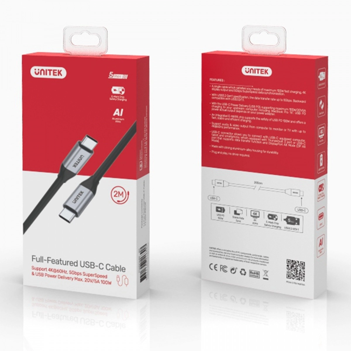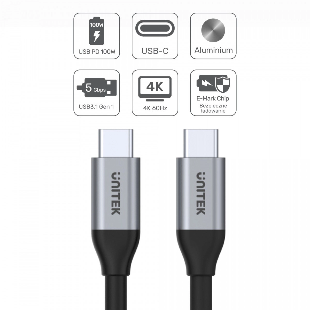 Univerzálny kábel USB‑C ↔ USB‑C s dĺžkou 2 m na rýchly prenos dát, obrazu aj napájania. Ponúka až 100 W Power Delivery, prenos dát 5 Gbps (USB 3.1 Gen 1) a video až 4K pri 60 Hz. Vďaka E‑MARK čipu a hliníkovým konektorom je pripojenie rýchle, stabilné a bezpečné.