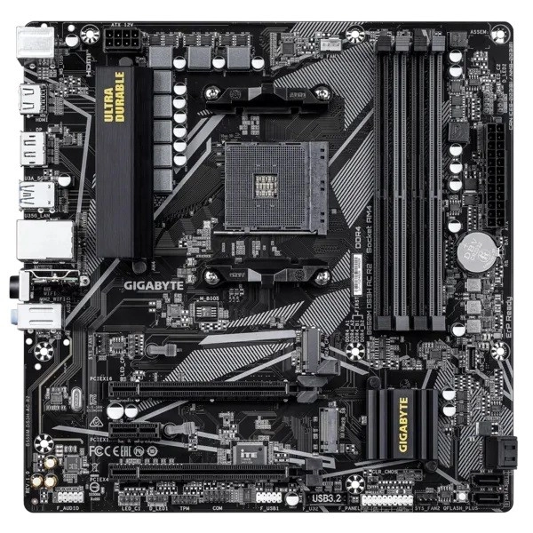 GIGABYTE B550M DS3H AC R2 prináša vyváženú kombináciu výkonu, konektivity a spoľahlivosti pre platformu AMD AM4. Doska podporuje procesory AMD Ryzen 5000/4000/3000, ponúka stabilné napájanie vďaka digitálnemu 5+3‑fázovému VRM a efektívne chladenie s VRM Thermal Armor. Vďaka Wi‑Fi 5, GbE LAN a obrazovým výstupom HDMI a DisplayPort ľahko zostavíte moderný multimediálny či herný počítač.