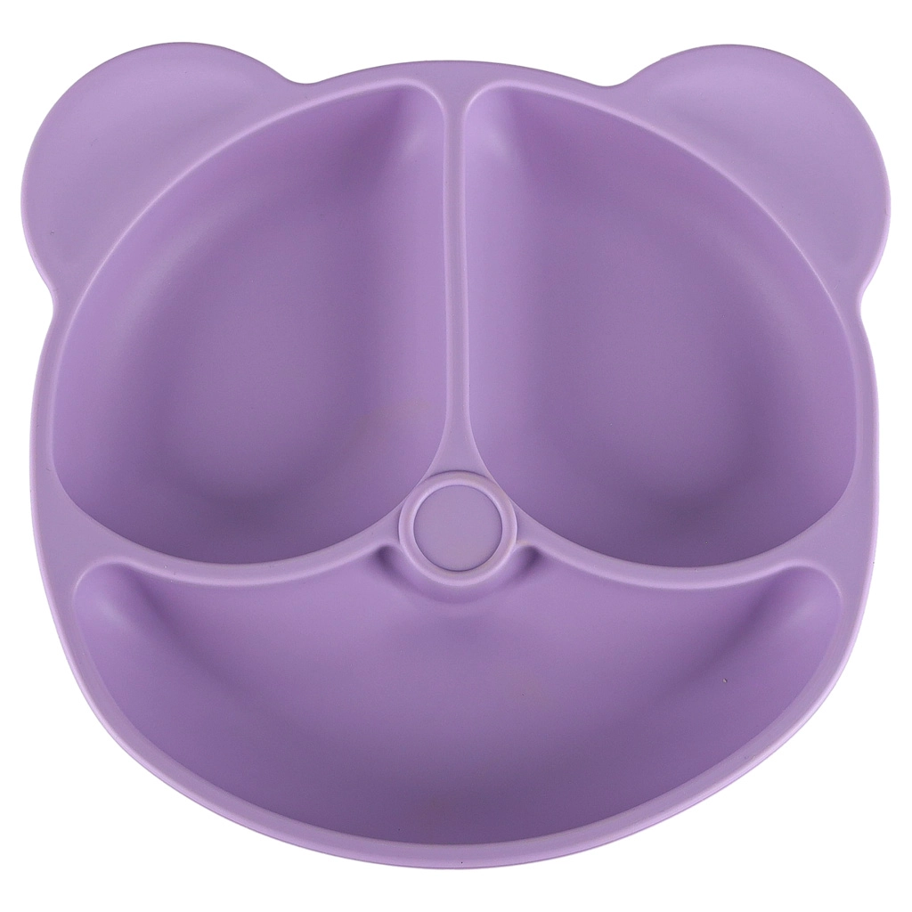 Delený tanier v tvare medvedíka a miska s prísavkou pevne držia na stole či pulte detskej stoličky, takže sa minimalizujú nehody a prevrátenie pri jedle.