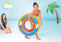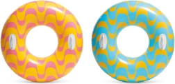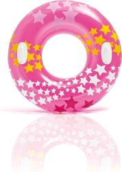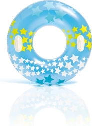 Nafukovací kruh INTEX s hravou hviezdičkovou témou je ideálny na letné vodné radovánky. Vďaka priemeru 91 cm poskytuje pohodlnú oporu a dve integrované držadlá pre istejší úchop a lepšiu ovládateľnosť vo vode. Kvalitný materiál a precízne spracovanie zaisťujú dlhú životnosť a bezpečné používanie.