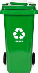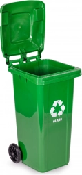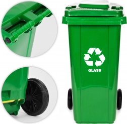 Praktický a odolný kontajner na triedenie skla s objemom 120 l z HDPE odolného voči UV, chemikáliám a mechanickému poškodeniu. Gumové kolesá a ergonomické madlo zabezpečujú ľahkú manipuláciu, tesniace veko chráni pred dažďom a zápachom. Stabilitu na klzkom povrchu zvyšujú protišmykové nožičky. Vhodné pre domácnosti aj firmy, kompatibilné s komunálnym zvozom podľa EN 840 a certifikované ISO9001, ISO14001, ISO45001.
