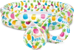 Detský nafukovací bazénik s veselou tropickou/ovocnou potlačou vytvorí bezpečné a zábavné miesto na letné osvieženie. Tri samostatné vzduchové komory zabezpečujú stabilitu a pohodlie, pričom súčasťou balenia je aj plávací kruh a nafukovacia lopta pre ešte väčšiu porciu hier.