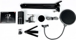 Sada zahŕňa rameno na uchytenie, anti-vibračný držiak (shock mount) a pop filter, ktoré spoločne minimalizujú vibrácie, nežiaduce zvuky a sykavky. Vďaka ľahkej a kompaktnej konštrukcii z odolného hliníka je mikrofón ľahko prenosný a pripravený na prácu v rôznych prostrediach.