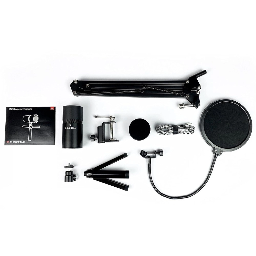 Kompletná sada na streamovanie a podcasting s mikrofónom Thronmax TM-M20, ramenom, shock mountom a pop filtrom. Ponúka čistý zvuk, široký frekvenčný rozsah 20 Hz–20 kHz a kompaktnú, ľahkú konštrukciu z hliníka pre pohodlné použitie doma aj na cestách.