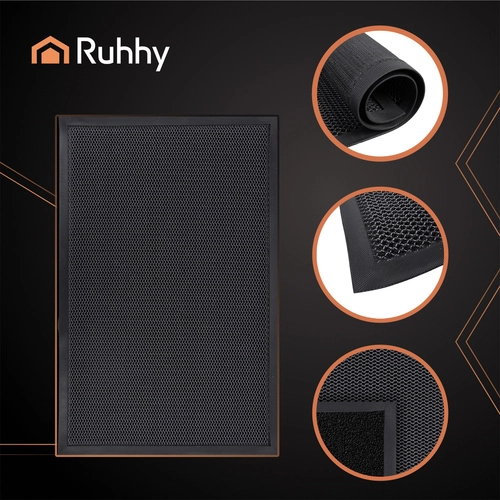 Rohož RUHHY je spoľahlivým riešením pre vstupy do domu, bytu, kancelárie aj predajne. Jej pevná a odolná konštrukcia s 3D mriežkou efektívne zoškrabuje blato, piesok a vodu z obuvi, takže interiér ostáva dlhšie čistý. Vyvýšené okraje pomáhajú udržať nečistoty a vlhkosť na rohoži a bránia ohýbaniu rohov.
