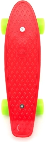 Červená doska v kombinácii so zelenými kolesami prináša výrazný vzhľad, ktorý si deti zamilujú. Pennyboard je navrhnutý tak, aby zvládol každodenné používanie, učenie základných zručností a pohodlné presuny po chodníkoch.