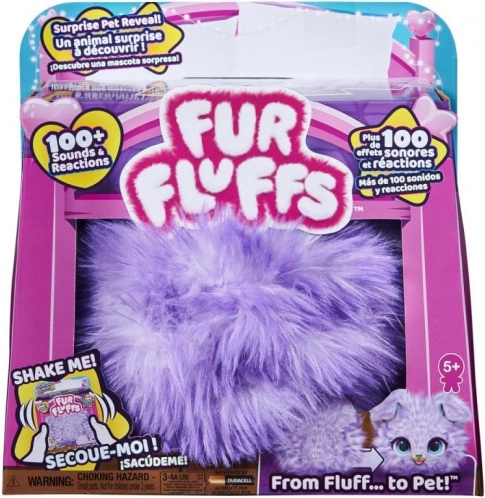 Fur Fluffs je veselý interaktívny plyšák, ktorý zaujme na prvý dotyk – z hebkého fialového klbka sa po zatrasení a mojkaní vylúpne roztomilý psík. Vďaka viac než 100 zvukom a reakciám prináša množstvo zábavy a podnecuje fantáziu detí. Je ideálny na mojkanie, hranie aj ako darček pre malých milovníkov zvieratiek.