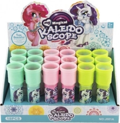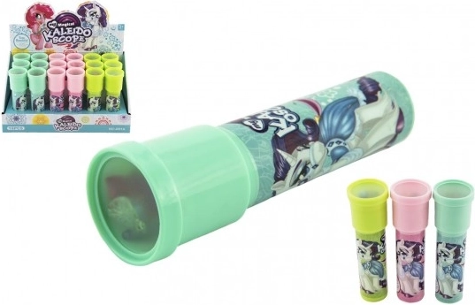 Kaleidoskop, čiže krasohľad, je nadčasová hračka, ktorá pri pohľade proti svetlu pomocou sústavy zrkadiel a farebných teliesok vytvára jedinečné a neustále sa meniace obrazce. Motív jednorožca poteší všetkých malých snílkov a milovníkov čarovných svetov.