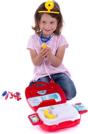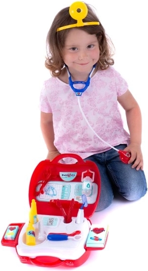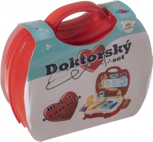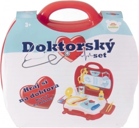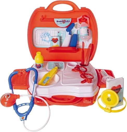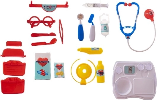 - Plastová lekárska sada s rôznymi nástrojmi (napr. stetoskop, injekcia, teplomer, okuliare, liekovky)