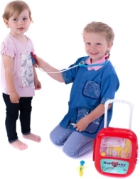 Detská lekárska sada so stetoskopom v pojazdnom kufríku
