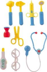 • Kompletná výbava malého lekára – stetoskop, injekcia, nožnice, kladivko a ďalšie doplnky.