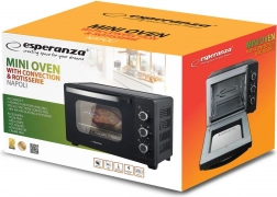 Mini rúra ESPERANZA Napoli spája kompaktné rozmery s maximálnym výkonom na každodenné varenie aj pečenie. Cirkulácia horúceho vzduchu zabezpečuje rovnomerné rozloženie tepla, rošt je ideálny na šťavnaté kura a pečienky a päť pracovných režimov pokryje všetko od chrumkavej pizze po zapekané jedlá. Dvojité sklo dvierok s vzduchovou medzerou zlepšuje tepelnú izoláciu a bezpečnosť.