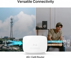 TP-Link Archer MR505 je univerzálny 4G LTE router pre miesta bez pevnej prípojky aj ako spoľahlivá záloha internetu. Vďaka technológii LTE Advanced Cat6 zvláda sťahovanie až 300 Mb/s a upload 50 Mb/s. Dvojpásmová Wi‑Fi AC1200 (2,4 GHz 300 Mb/s + 5 GHz 867 Mb/s) pokryje bežné domácnosti aj menšie kancelárie s dostatočnou kapacitou pre video, videohovory a smart domácnosť.