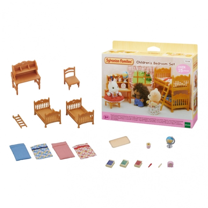 Rozšírte svoj domček pre figúrky o čarovnú vidiecku detskú izbu od SYLVANIAN FAMILIES. Set obsahuje poschodovú posteľ pre dve figúrky s matracmi, perinami a rebríkom, ako aj písací stôl so stoličkou a doplnkami (knihy, hodiny, glóbus a ďalšie). Vďaka 18 detailne spracovaným dielom podnecuje kreativitu a predstavivosť detí od 3 rokov a ponúka bezpečnú a dlhotrvajúcu zábavu.