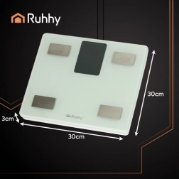 - Elegantný dizajn: biela plocha z tvrdeného skla, tenké prevedenie 30 × 30 × 3 cm – vhodné do kúpeľne, kancelárie aj na domácu posilňovňu.