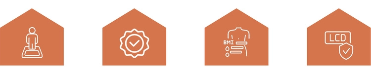 - Komplexný prehľad tela: hmotnosť, BMI, % telesného tuku, voda v tele, svalová a kostná hmota, viscerálny tuk, tvar postavy, vek metabolizmu, bielkoviny a i.